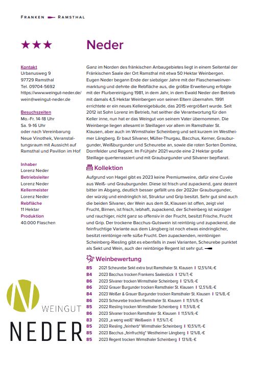 Wer ungekünstelte fränkisch trockene Weine mit Ecken und Kanten zu fairen Preisen schätzt, ist beim Weingut Neder an der fränkischen Saale bestens aufgehoben…mehr